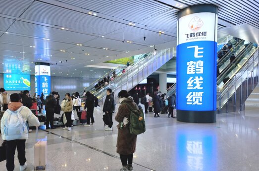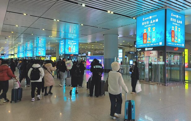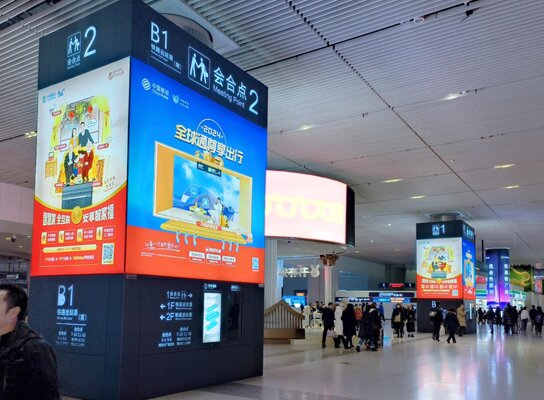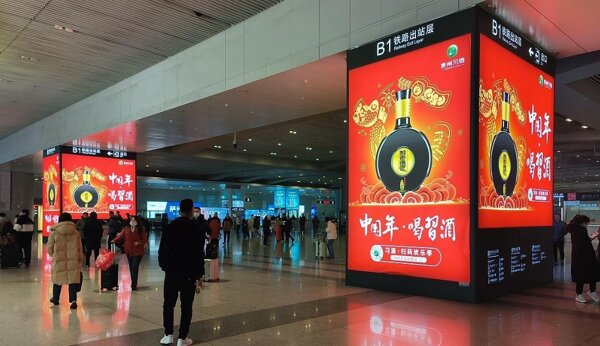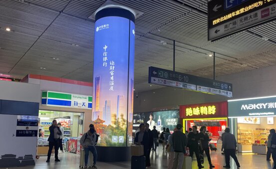 | 西安北高铁站广告案例图-魔方柱 | 候车区-魔方柱刷屏 |
