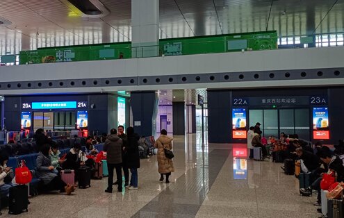 2025 年春运重庆西站创多项纪录,累计发送旅客 356.1 万人次,客流高峰日 2 月 4 日发送 12.4 万人次,刷新开站以来单日新高。这也是渝昆高铁渝宜段开通后的首个春运,亮眼成绩凸显其在区域交通中的核心枢纽作用。此外,2025 年 10 月 1 日该站单日发送旅客达 15 万人次,日常客流保持高位运行。