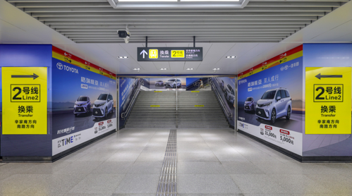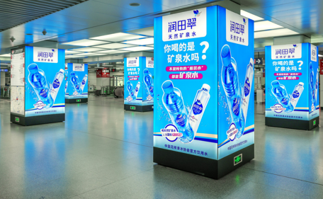 2号线站厅下行侧:墙贴+5个灯箱 2号线站厅上行侧:墙贴+5个灯箱 3号通道:墙贴+2个灯箱+1根立柱贴 4号通道:墙贴+4个灯箱 |