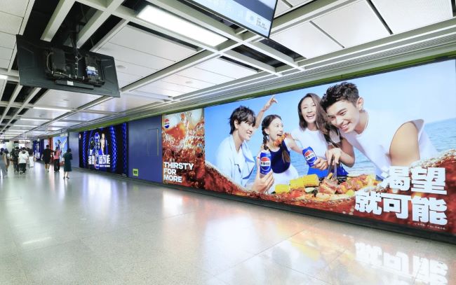 广州地铁体育西路主题站厅南站厅墙面广告超级灯箱与墙贴组合形成贯通地面至天花板的完整视觉界面,消除传统媒体拼接感,在纵向空间实现无缝视觉包裹。墙面连续布局避免信息中断,乘客行进中可持续接触广告内容,总曝光时长可达60-90秒/人次。针对体育西路站复杂的多向动线,南站厅墙面处于换乘必经路径,确保所有方向客流均能正面接触广告;乘客与墙面距离仅1-2米,画面细节清晰呈现,阅读体验优于远端大屏。
