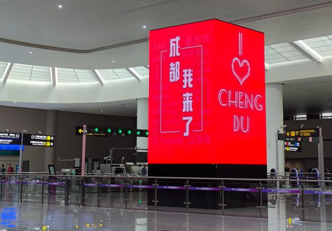 成都地铁天府机场站LED包柱大屏:空铁联运的视觉焦点