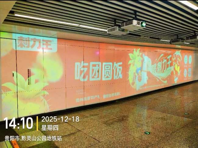 贵阳地铁黔灵山公园站通道墙面投影大屏广告
