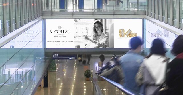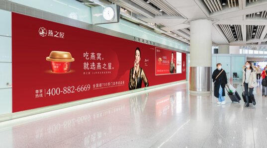 媒体位置/形式:国内国际出发检票后东西两侧直梯电梯贴膜 媒体编号:BSD-33C-H002 & H003 媒体尺寸:9.1m*4.3m 媒体数量:2个 媒体报价:390万元/月 媒体制作费:6万元/次