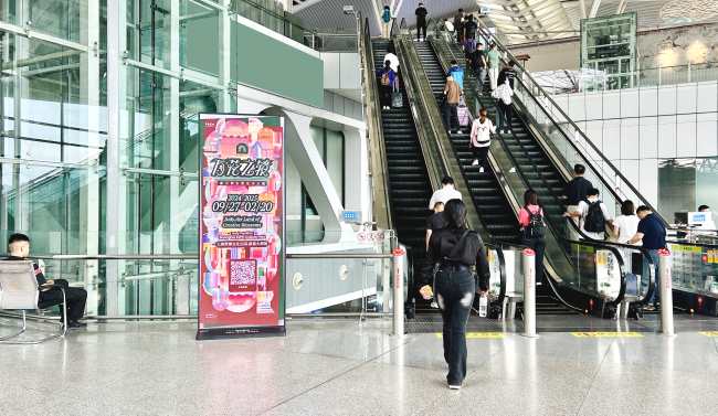 媒体位置:三层出发厅检票口+二层扶手电梯换乘口