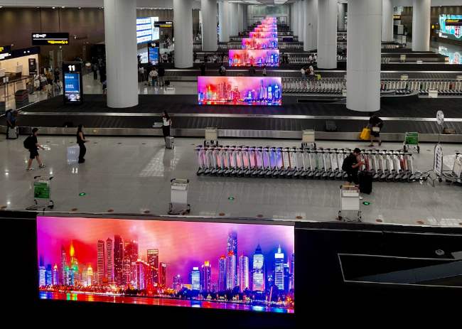 青岛机场到达大厅行李转盘上方LED大屏广告