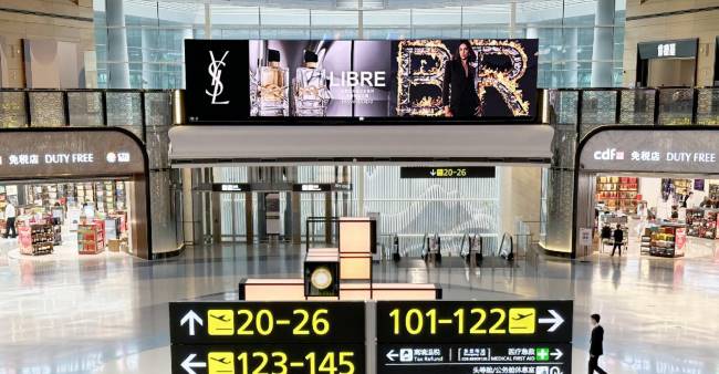 成都天府机场国际出发免税店LED广告投放,成都机场大屏广告