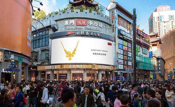 显眼突出:LED大屏广告通常位于建筑物外立面、商业街区或重要交通枢纽等地方,这些位置非常显眼醒目,能够让广告信息一眼被人注意到,从而达到更好的宣传效果。