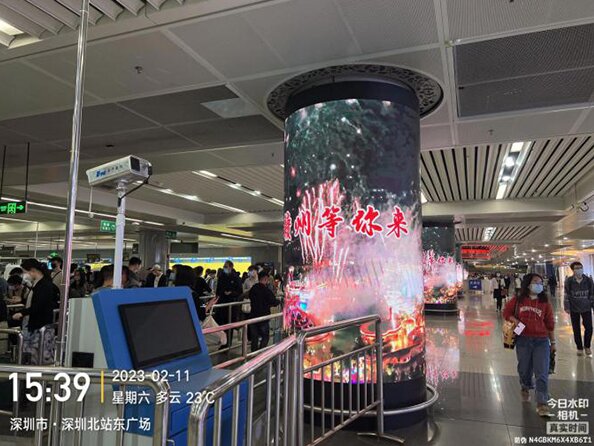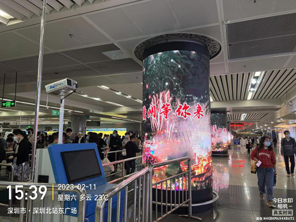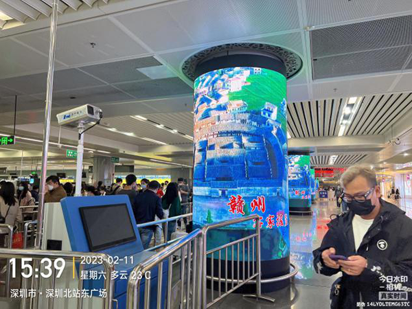 深圳北站换乘区包柱LED广告价格,文旅政府深圳北高铁站广告案例
