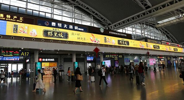 广州南站最大LED大屏广告价格?食品快消广州南站广告案例