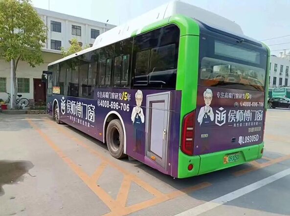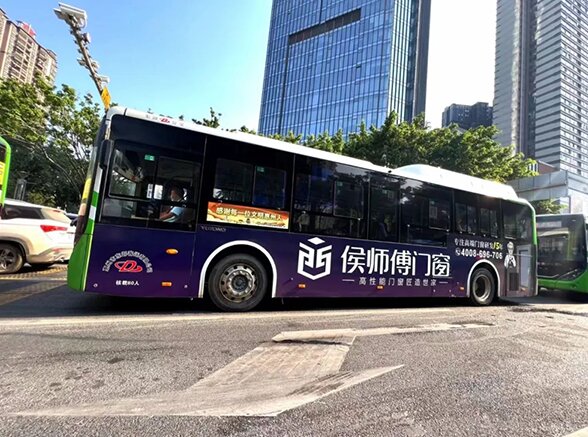 为塑造品牌形象及提升品牌知名度,广东侯师傅门窗强势出击,斥巨资进行户外广告的宣传投入,车尾展示区配合两侧展示面构成展示整体,醒目大气的广告标志与立体丰富的展示形态形成鲜明对照,图文结合、光影交汇的文化导视觉画面,使品牌形象更凝练、更开阔、更高级、更有可读性。广告强势登陆多条公交线路,霸屏模式点亮品牌新形象。