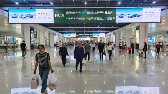 重庆北站出站通道中央双面吊挂屏广告