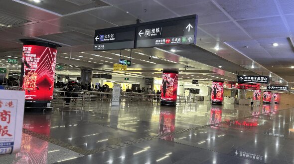 媒体位置:进出站换乘大厅,高铁地铁5号线出租换乘大厅区域