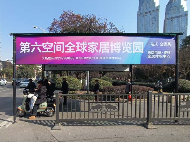 金华十字路口红绿灯遮阳棚广告大牌广告位于核心交通节点,通勤与商业客流车辆在等待红绿灯时自然停顿,行人通过交叉口时驻足等候,使得广告能够充分利用这些碎片化的等待时间。遮阳棚广告位于行人及驾驶者的平行视线高度,双面的媒体设计可以同时覆盖两个方向的通行人群,提高了单点位的传播效率。