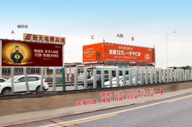 佛山南海罗村大桥路段,是连接丹灶、三水与桂城等多个区域的重要通道,日均车流量达10万车次。这一位置不仅承载着通勤交通,更服务于周边专业市场集群,包括汽车城、光电商贸城、装饰材料城等大型商贸实体。今天给大家介绍下佛山户外大牌广告价格和热门位置推荐。